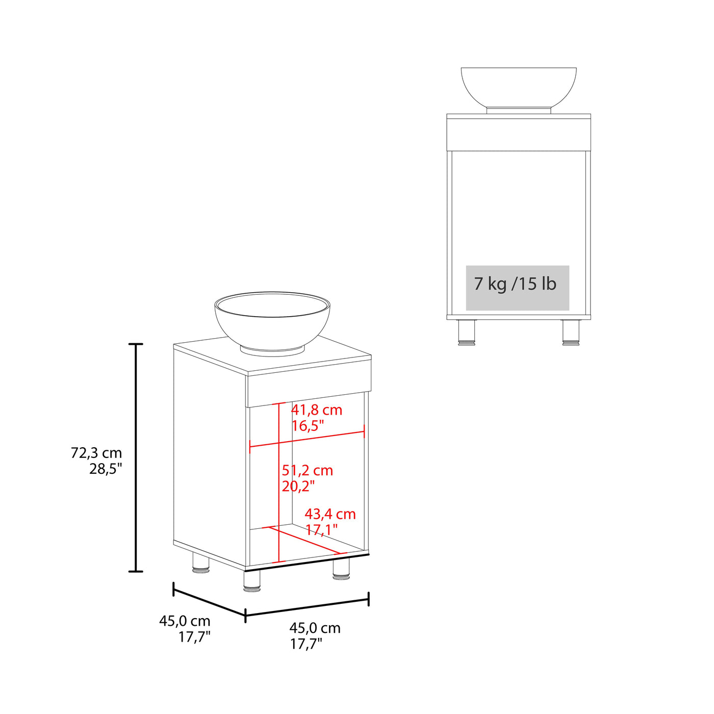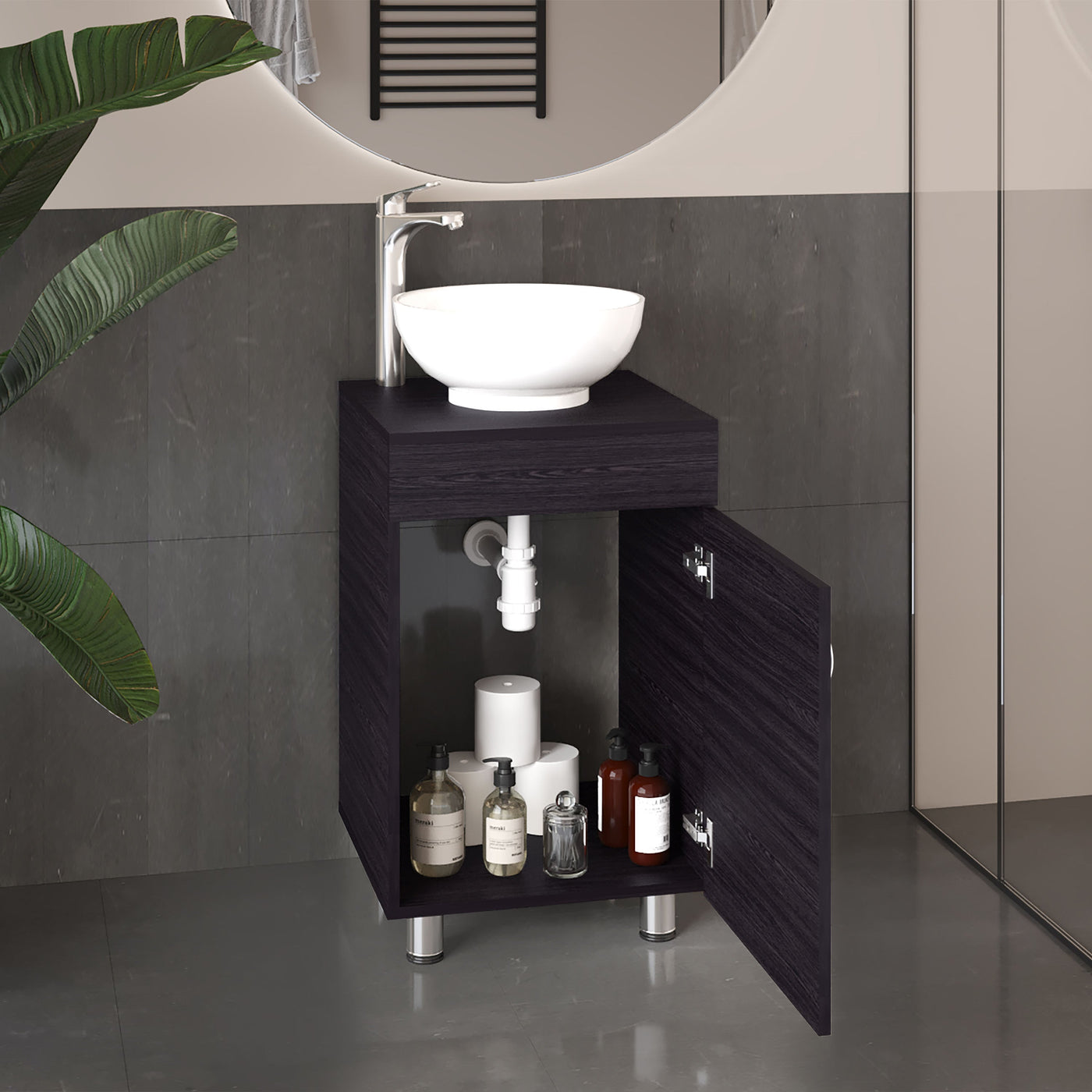 The Vicksburg Bathroom Vanity is a practical and stylish addition to any bathroom, providing a functional storage solution in a compact design. Featuring a single door and four sturdy legs, this vanity offers a sleek and organized space to store bathroom essentials. Its durable construction ensures long-lasting use, making it a great choice for modern and classic spaces alike.