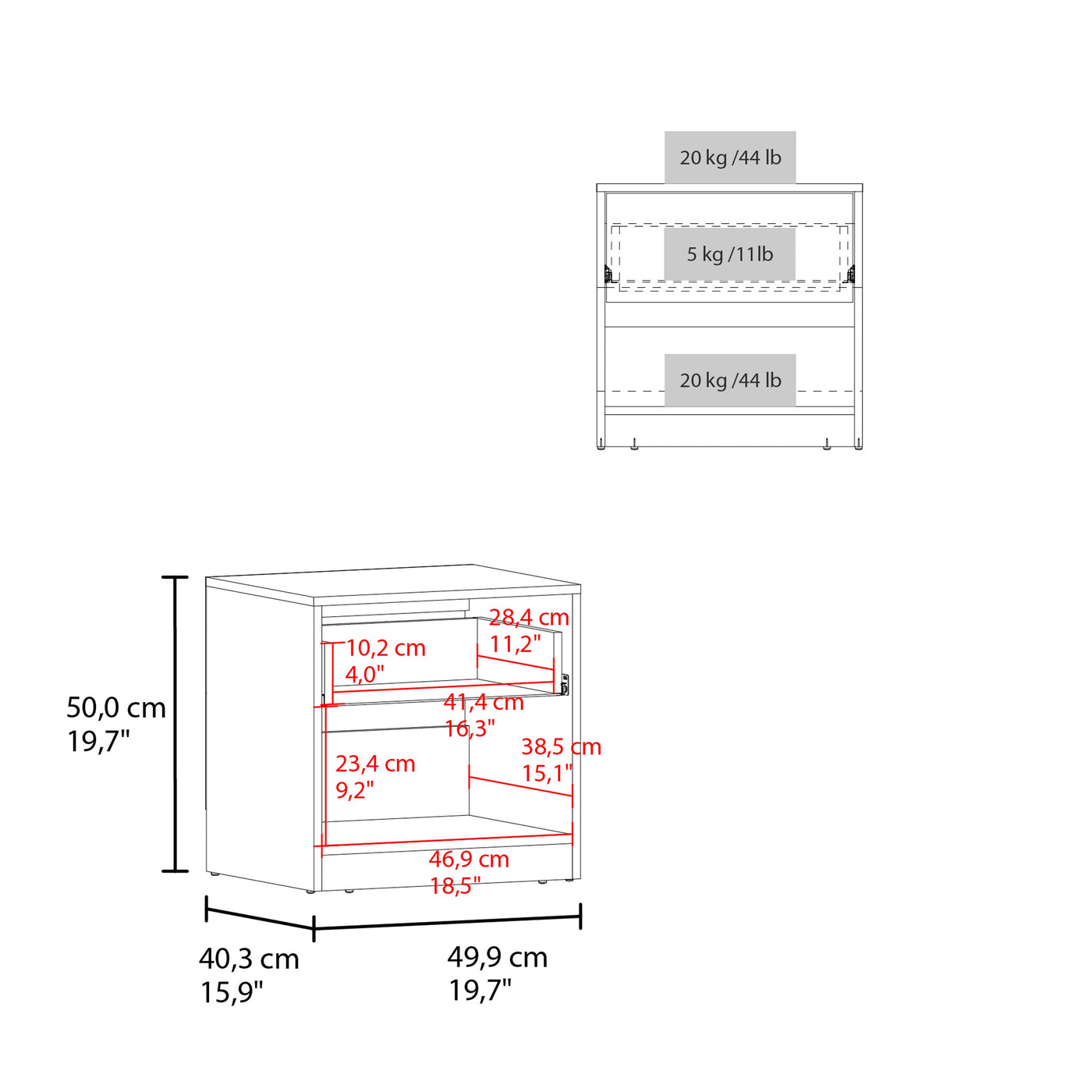 Palmyra Nightstand, 1 Door, 1 Shelf, Natural Oak / Matt Gray