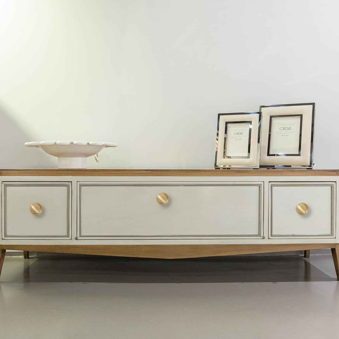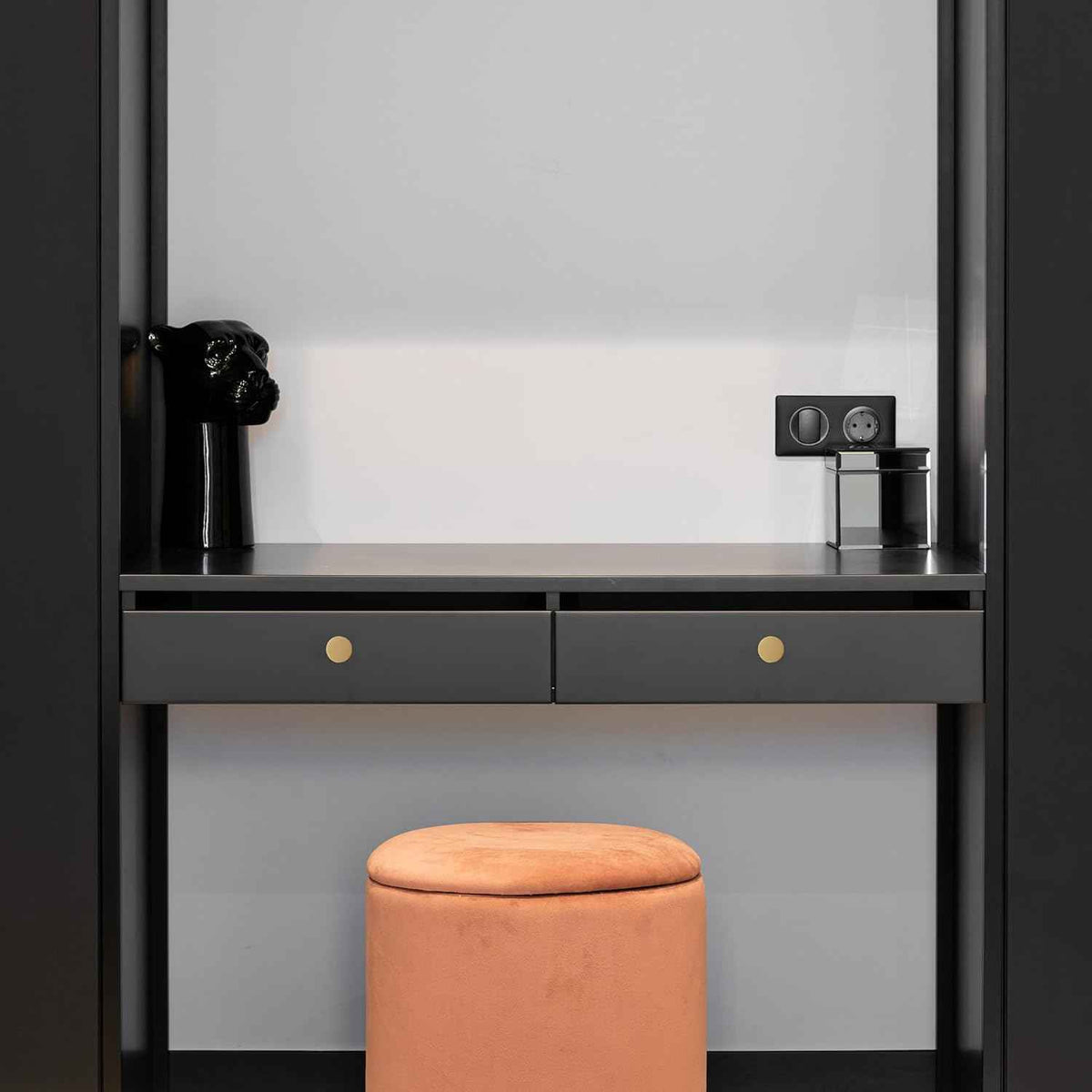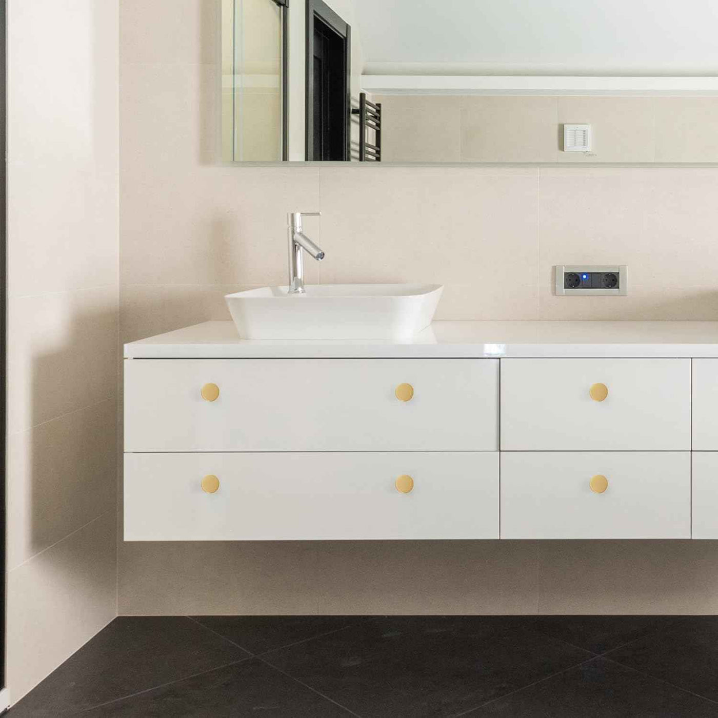 Modern Minimalist Design: Clean lines with an elegant brass tone