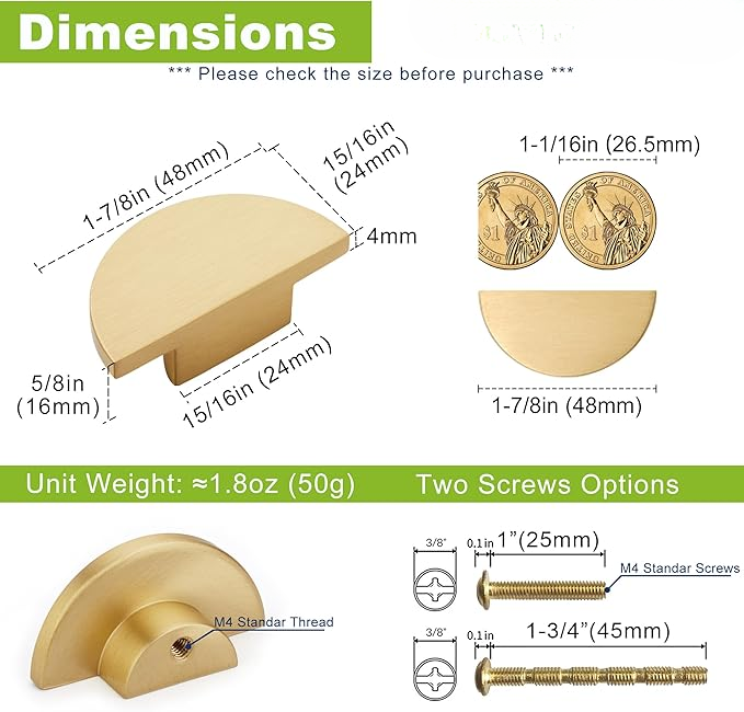 Featuring a modern minimalist design, these gold cabinet knobs blend seamlessly with a wide range of cabinet and furniture styles. Whether used in the kitchen, bedroom, bathroom, or living room, they are perfect for drawers, dressers, cabinets, and furniture upgrades. Their elegant brass color turns functional hardware into a stylish part of your home décor.