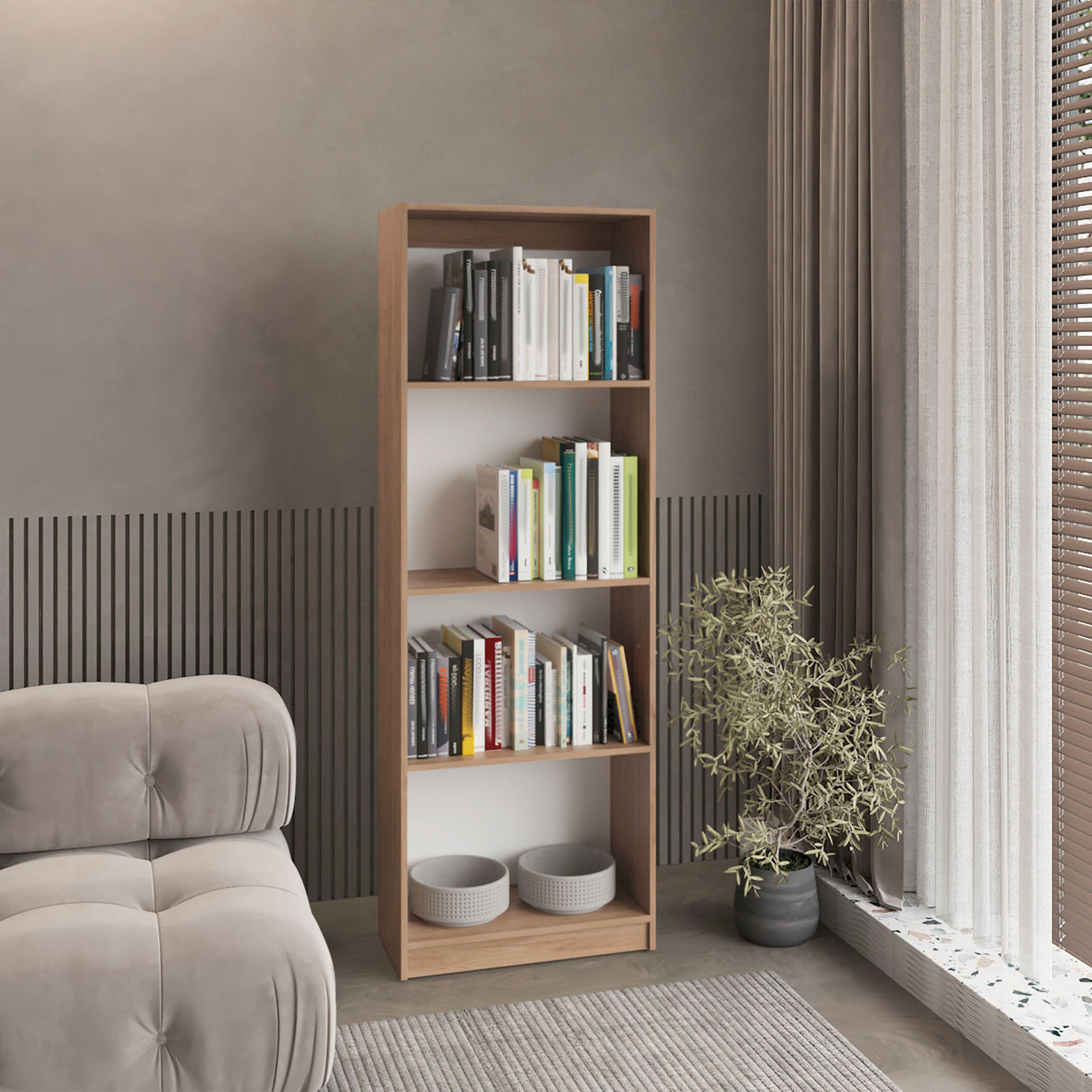 Vinton Bookcase with Spacious Tier-Shelving Design, Natural Oak / White