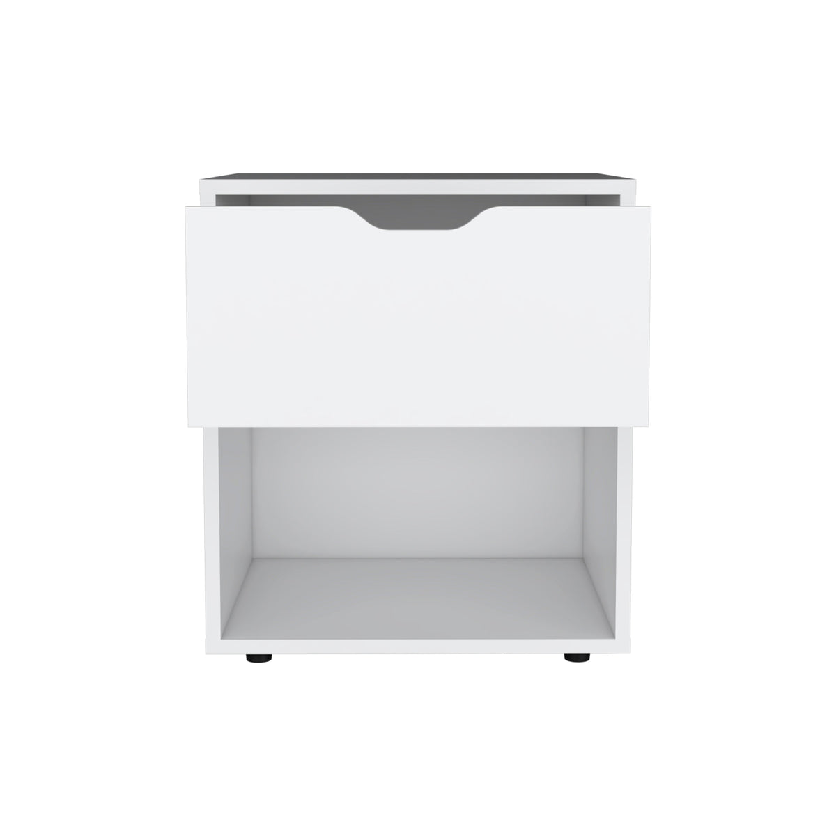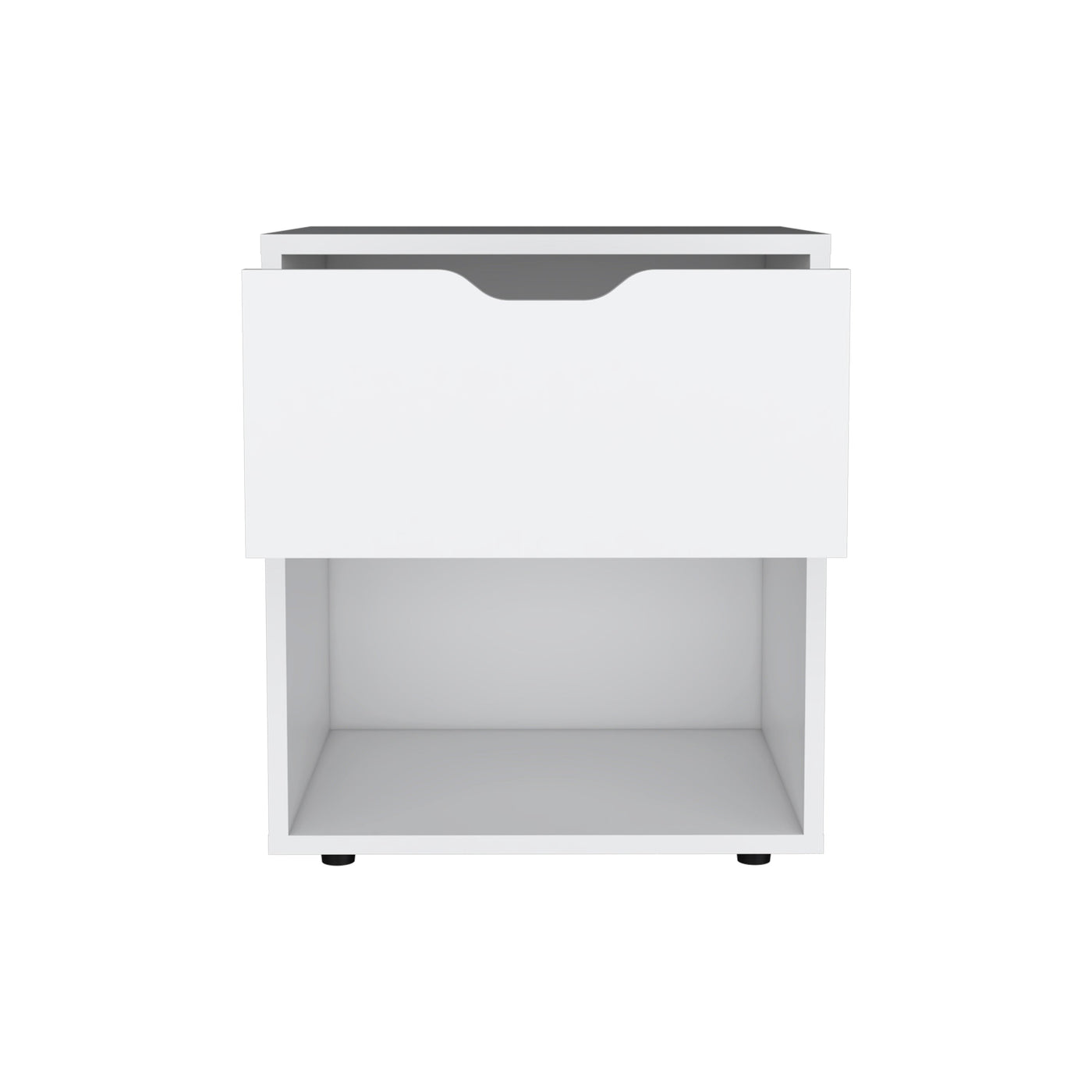 The Adak nightstand transforms your bedroom with elegance and organization. This versatile piece blends contemporary design with surprising features. It boasts a spacious, safe drawer for organized essentials, an open display compartment, and a customizable top. Choose from white, black, or light gray to match your decor. Crafted from durable manufactured wood, the Adak nightstand ensures long-lasting beauty. Its modern design and practicality offer an all-in-one solution for storage and style. Select your favorite color to create a bedroom reflecting your unique style and enjoy its beauty for years.