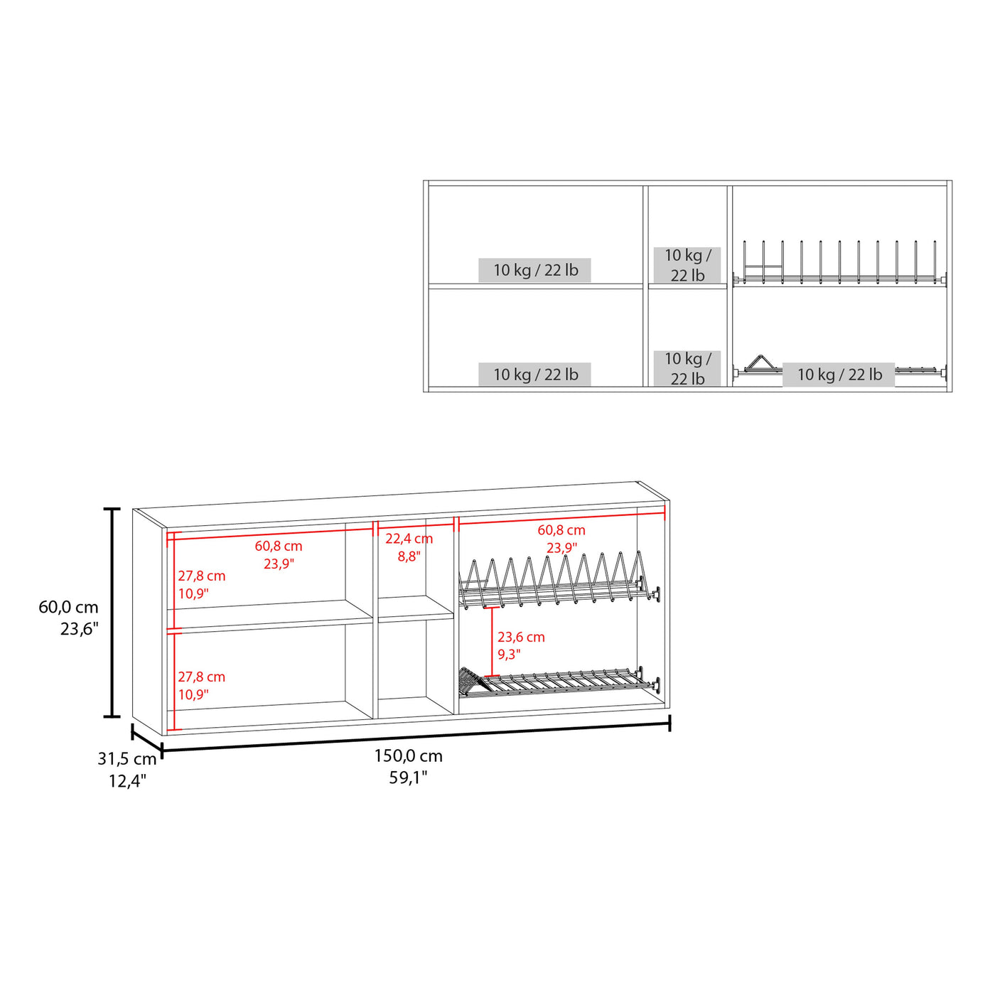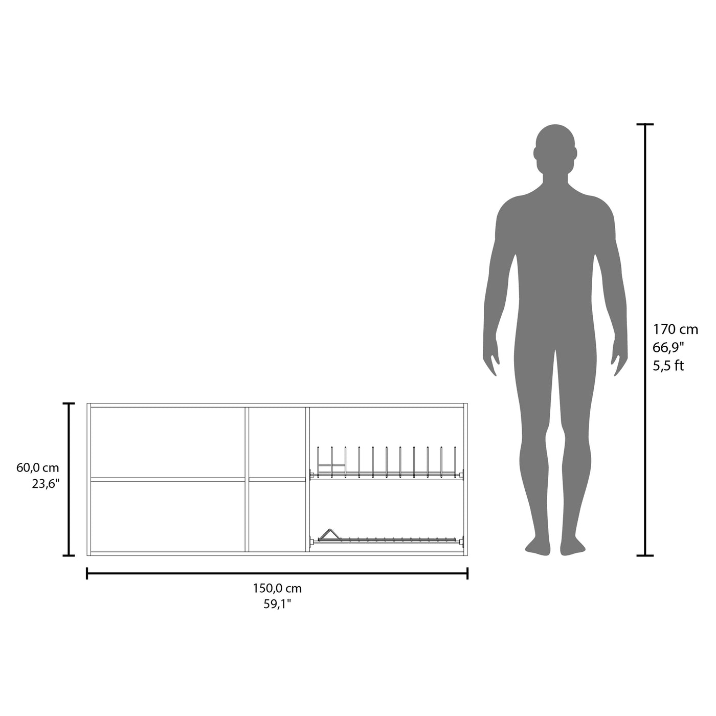 The Olimpo 150 Wall Double Door Cabinet will give you that extra storage space that you need in your kitchen, garage, or mudroom. It features a modern design in harmony with functionality and comes with four-door panels with metal handles, a built-in dish rack, and holder, and two open center shelves for storage or display. Designed with elegant Black Wengue, Natural Oak manufactured Wood finish.