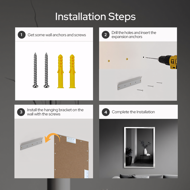 Easy Installation & Safe Delivery: Featuring a rectangular hole for stable mounting, our farmhouse-style rectangular bathroom mirror can be installed vertically, horizontally, or simply leaned against the wall to fit various spaces. It includes all necessary mounting hardware and is securely packaged with EVA corner protectors to ensure safe delivery.